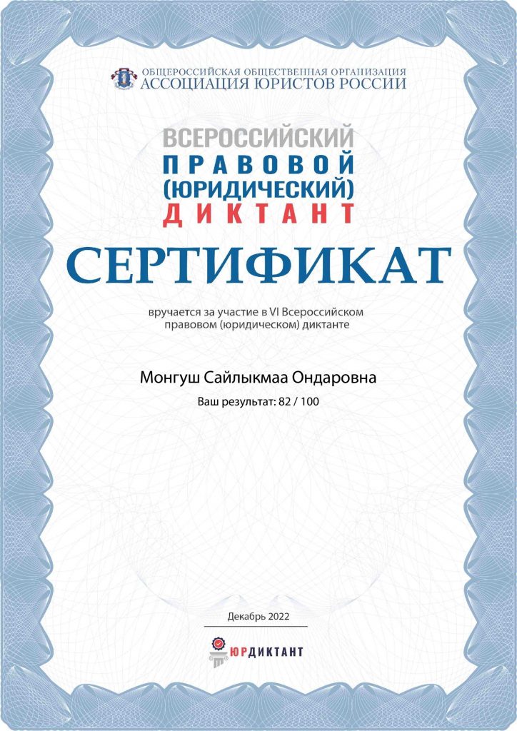 12 декабря -День Конституции Российской Федерации 12.12.2022 / С 1 по 12 декабря прошел V Всероссийский правовой (юридический) диктант. Наши коллеги участвовали и получили сертификаты. Поздравляем!